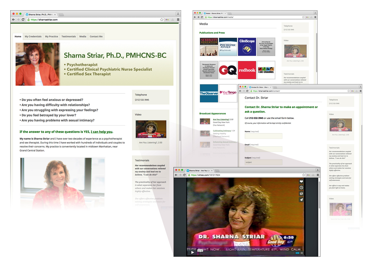 For a psychotherapist with a varied practice we developed and designed a website that captures Dr. Striar’s professional approach, credentials, personality, media, and client recommendations. The site has attracted business.